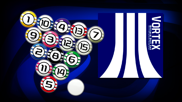 The Vigma Vortex billiard ball set represents a futuristic, multi-color, innovative set design for those who want to play out of this world. Multi-stripe design adds flair to traditional solids/stripes game. Get into the future with Vortex.